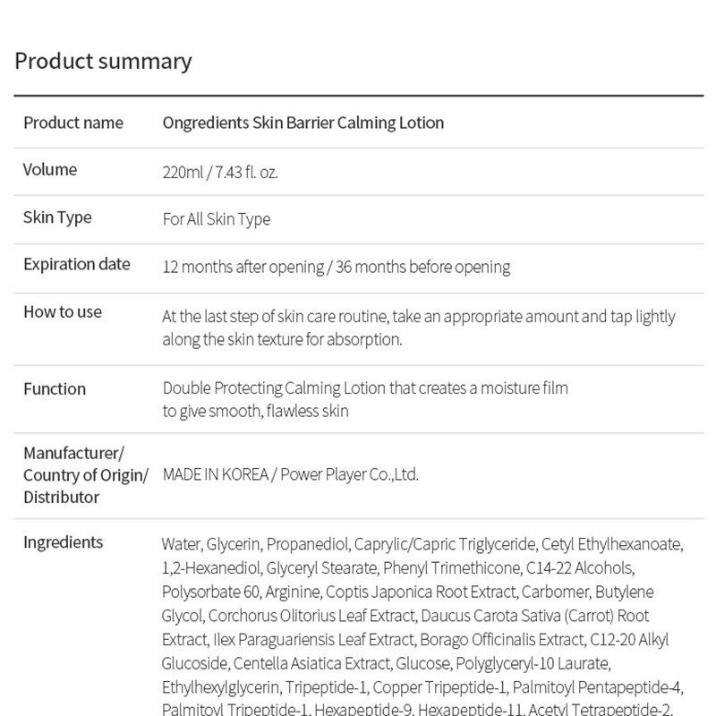 ongredients 皮膚屏障鎮靜乳液 Skin Barrier Calming Lotion 220ml
